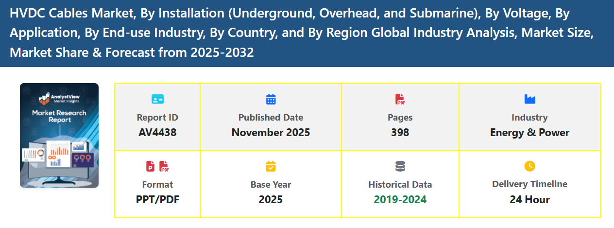The High Voltage Direct Current (HVDC) Cables Market is expanding rapidly as global energy systems evolve toward more efficient, reliable, and sustainable transmission networks. HVDC cables are essential components for transporting electricity over long distances with minimal loss, especially when linking remote renewable-energy sources to urban and industrial load centers. Their ability to provide stable power transfer, reduce transmission losses, and support large-scale grid integration makes them a cornerstone technology in modern power infrastructure.