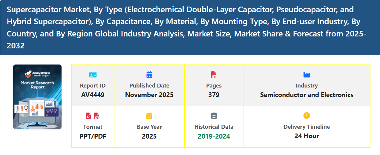 The Supercapacitor Market is experiencing robust growth as energy-storage technologies evolve to meet the demands of modern electronics, electric mobility, and renewable-energy systems. Supercapacitors—also known as ultracapacitors—bridge the gap between traditional capacitors and batteries by providing extremely fast charge–discharge cycles, high power density, long operational life, and reliable performance under harsh conditions. These attributes make them ideal for applications requiring quick bursts of energy, smoothing power fluctuations, or supporting peak load demands.
