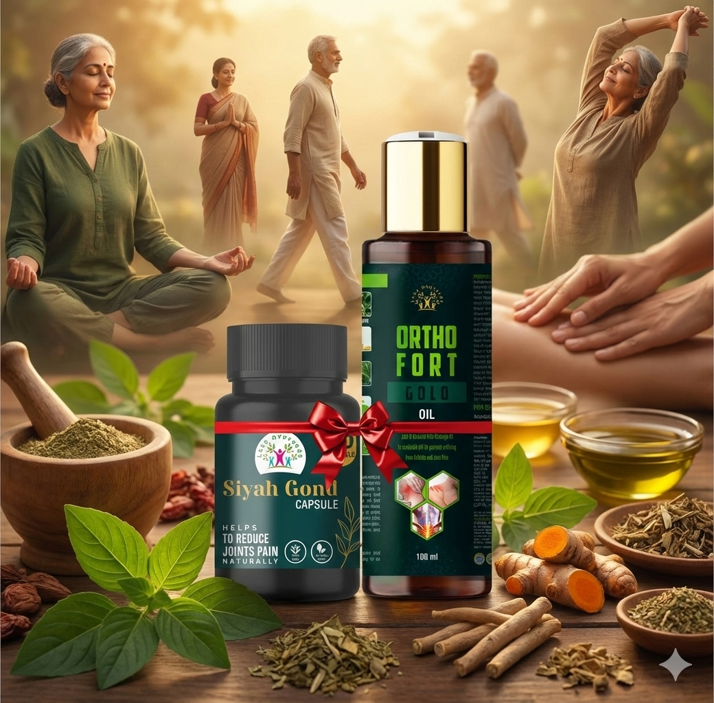 A supportive combo like the Ortho Pain Relief Combo—which pairs Siyah Gond capsules with Ortho Fort Gold Oil —represents a balanced Ayurvedic approach to joint and muscle care.