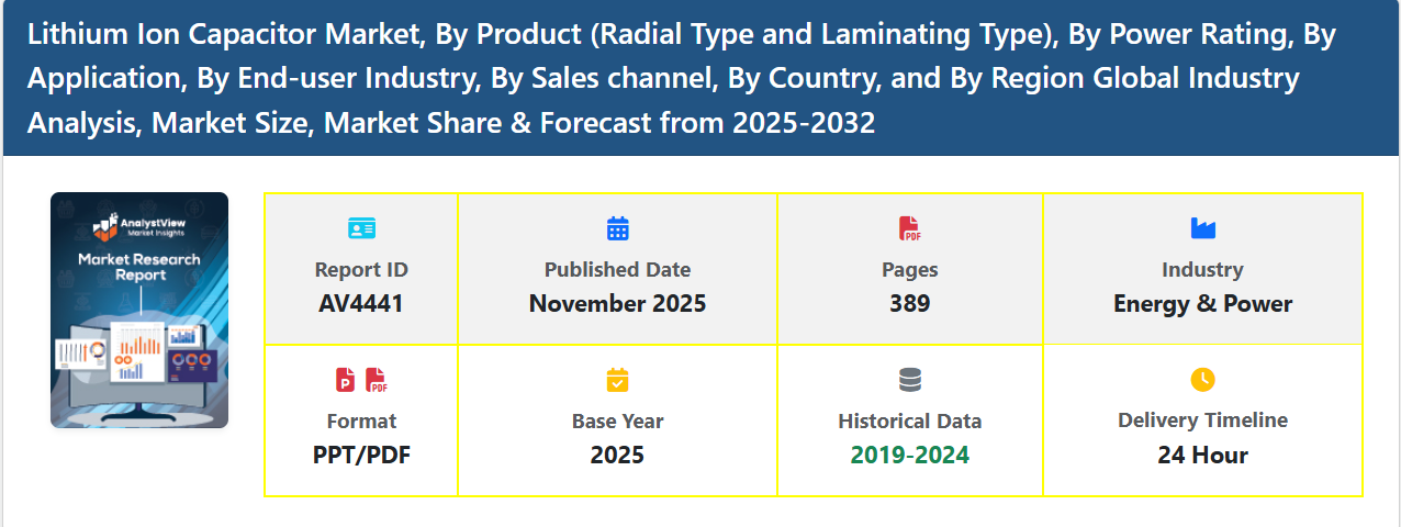 Growing investment in renewable energy, electrification of transport, and grid-support technologies is further strengthening market potential. As industries prioritize cleaner, safer, and more efficient energy storage, lithium ion capacitors are gaining global recognition as a balanced alternative to both supercapacitors and lithium-ion batteries.