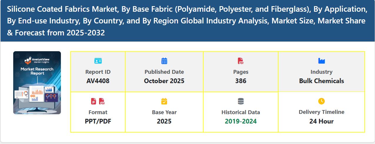 The Silicone Coated Fabrics Market is witnessing robust growth as industries increasingly adopt high-performance textiles for diverse applications, ranging from automotive and aerospace to construction, healthcare, and industrial sectors. Silicone-coated fabrics are engineered by applying a thin silicone layer onto base materials such as polyester, nylon, or fiberglass, enhancing properties like water resistance, flame retardancy, chemical stability, elasticity, and UV resistance. These versatile characteristics make silicone-coated fabrics ideal for demanding environments where durability and performance are critical.