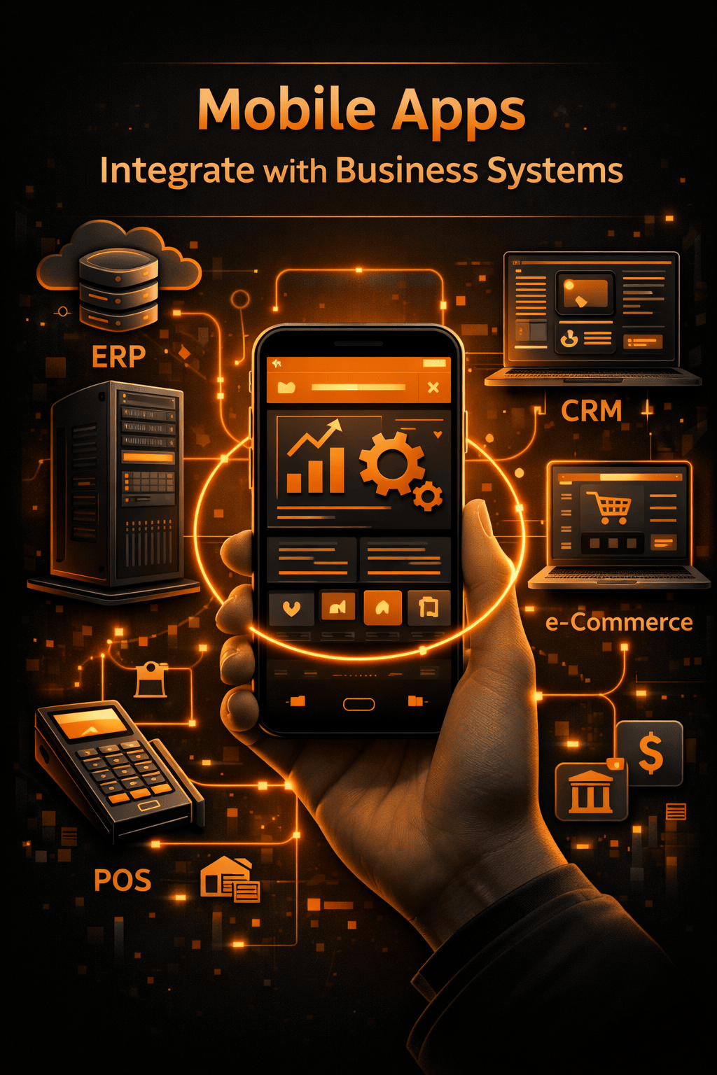 ERP systems manage inventory, procurement, logistics, and operations. Mobile apps integrated with ERPs enable: