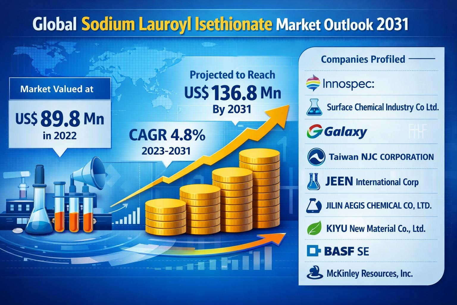 The global sodium lauroyl isethionate market is witnessing steady expansion, driven by the rising shift toward mild, sulfate-free, and naturally derived ingredients in personal care formulations. Valued at US$ 89.8 Mn in 2022, the industry is projected to expand at a compound annual growth rate (CAGR) of 4.8% from 2023 to 2031, reaching an estimated US$ 136.8 Mn by the end of 2031. Increasing consumer awareness regarding skin health, coupled with regulatory and sustainability pressures, is reshaping surfactant selection across cosmetic and personal care industries, positioning sodium lauroyl isethionate (SLI) as a key functional ingredient.