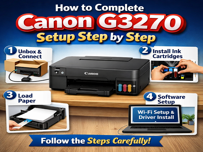 Setting up your Canon G3270 printer doesn't have to be difficult. You can quickly prepare your printer for high-quality printing, scanning, and copying with the correct procedures and a little perseverance. Here is a straightforward, beginner-friendly tutorial to help you set up the Canon G3270 efficiently and clearly.