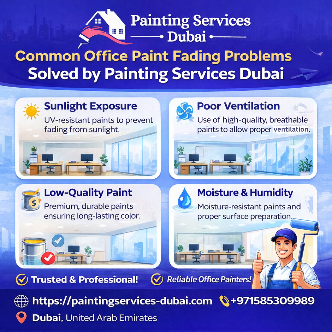 Office walls communicate more than people realize. Once paint begins to fade, it may gradually spoil the looks and the atmosphere of the working room and the image of the facility. Dubai has many offices that are faced with this problem by the extreme heat, intense sunlight, and frequent utilization. We at Painting Services Dubai are faced with these challenges every day and know how disappointing it is when there is lack of longevity of the wall colors. The article dissects the most common problems that lead to the fading of office paint and how Painting Services Dubai addresses them by planning well and delivering quality work. We are focused on one thing to maintain the office neat, well-groomed, and welcoming free of hassles.