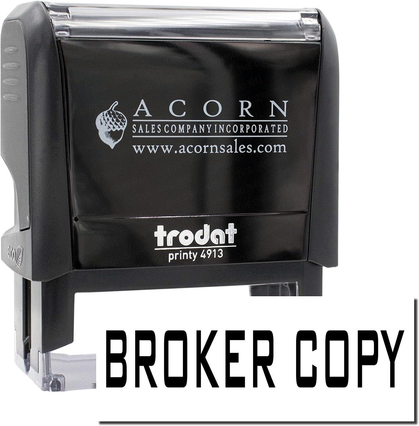 The impression size, approximately 7/8” x 2-1/4”, is perfectly balanced to stand out clearly without overwhelming the page. The clear base allows precise placement, ensuring each “Broker Copy” mark is neat and professional.