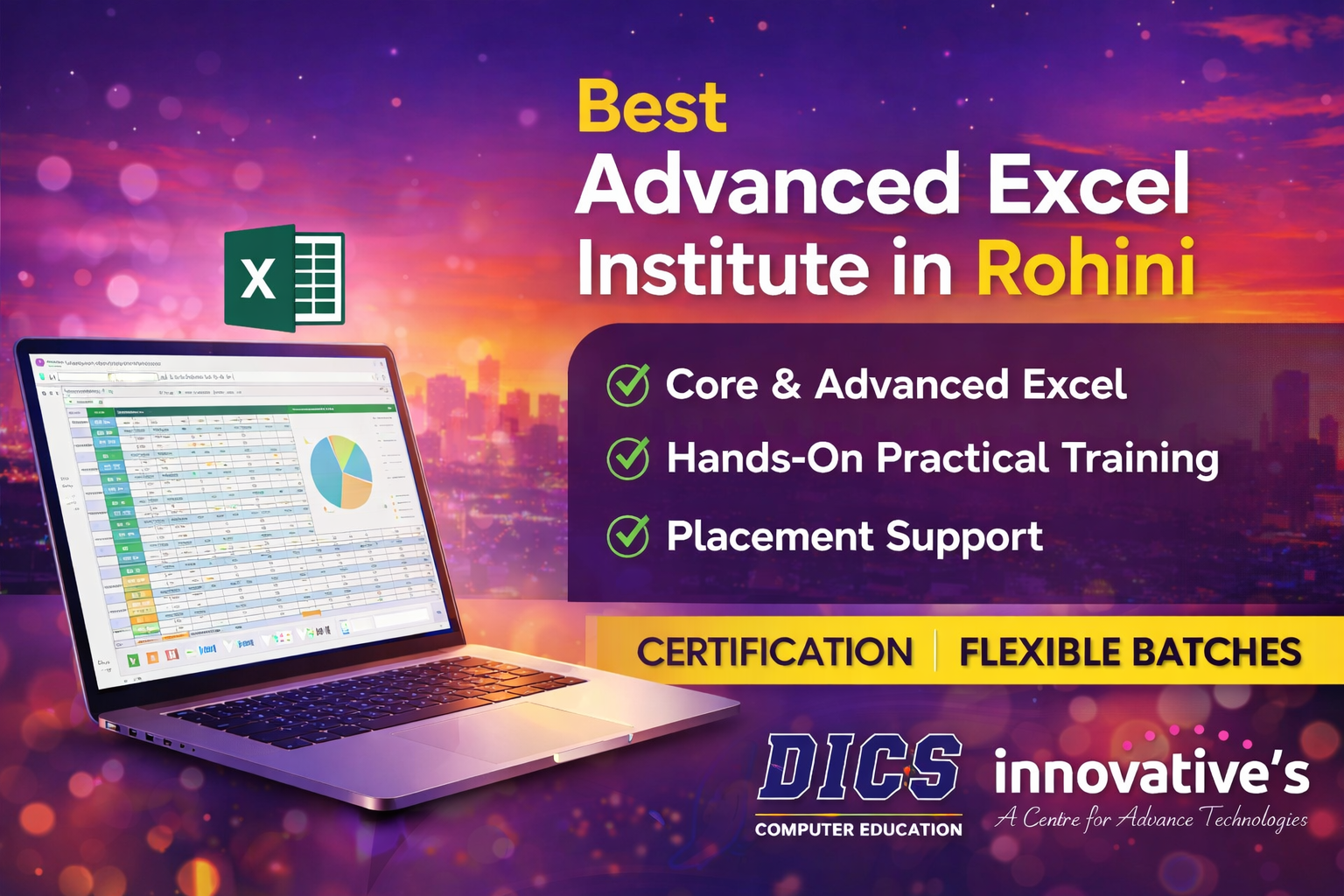 DICS Computer Education is widely regarded as one of the leading training centers for Advanced Excel with a strong reputation for excellence, practical learning, and career support.