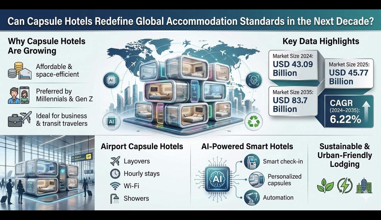 Changing travel habits and urban mobility patterns are reshaping the hospitality landscape. Capsule hotels reflect a broader shift toward efficiency-driven accommodations that align with short stays and flexible travel schedules.