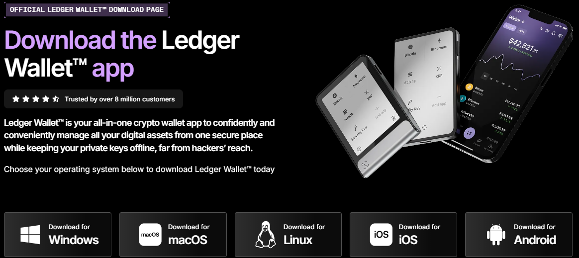 2. Download Ledger Live: The Ledger.com/start page will guide you to download Ledger Live, the official companion application for managing your crypto. Download it only from the links provided on this official page or from Ledger's verified GitHub repository. Install it on your desktop or mobile device.