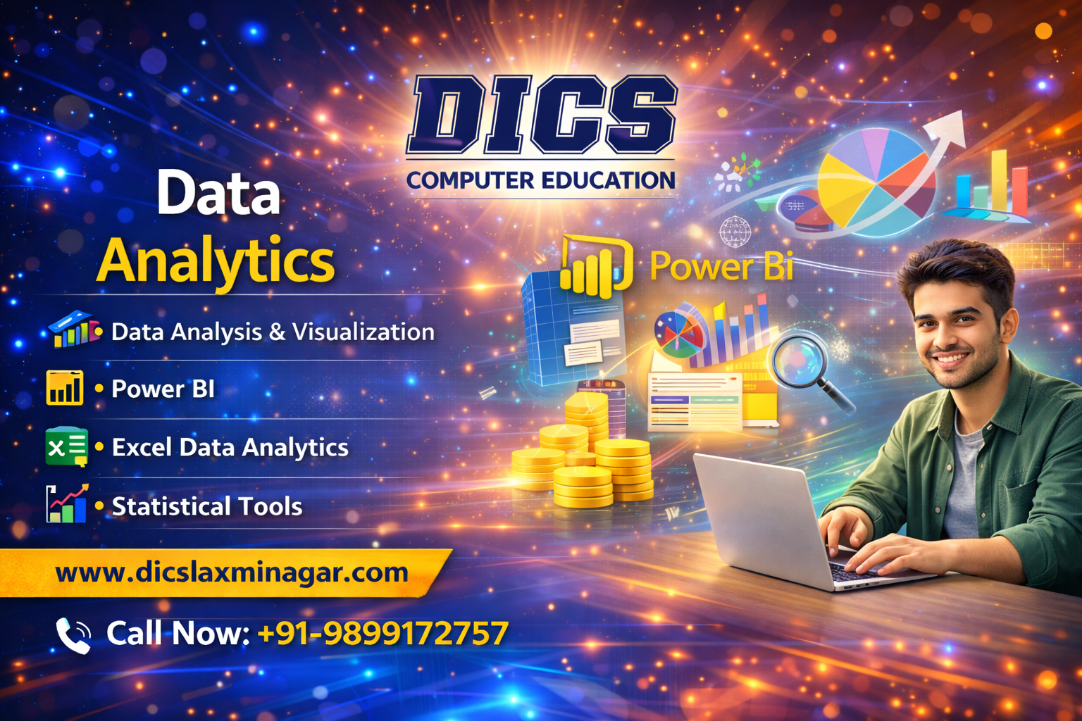 DICS Laxmi Nagar offers practical, job-focused Data Analytics courses designed for students, working professionals, and job seekers who want to build a strong career in analytics and data-driven decision making.