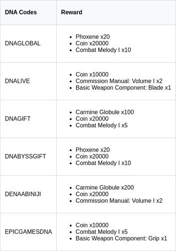 During the Duet Night Abyss livestream, the initial set of DNA codes was unveiled.