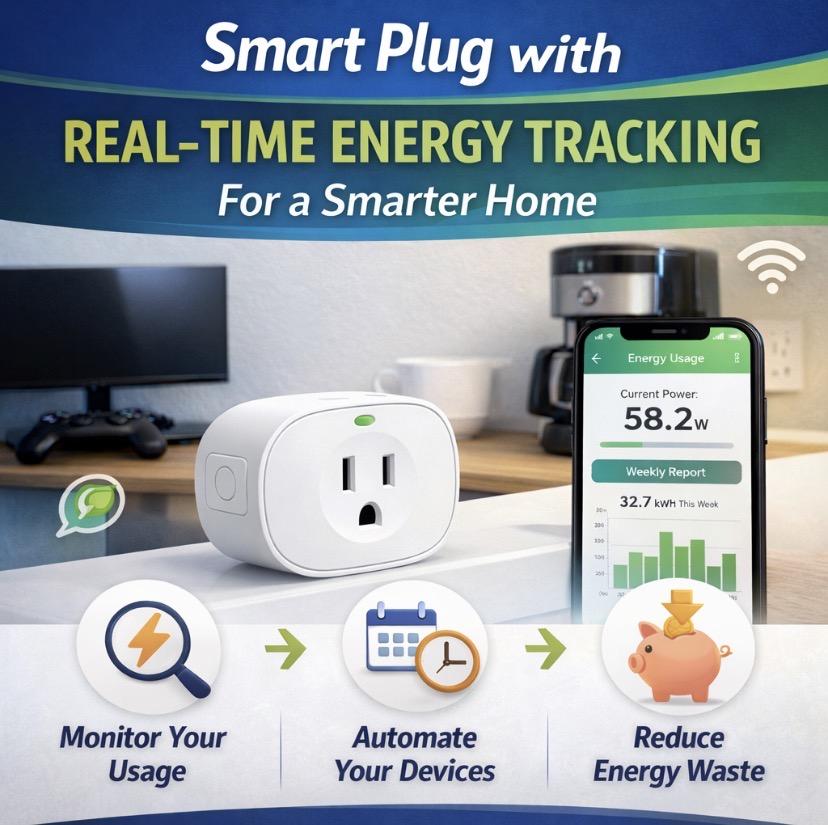 A Smart Plug with Real-Time Energy Tracking is a compact yet powerful smart home device designed to transform any regular electrical outlet into an intelligent, energy-aware connection. Once plugged in, it allows you to connect household appliances—such as lamps, coffee makers, heaters, or chargers—and monitor their electricity consumption in real time.