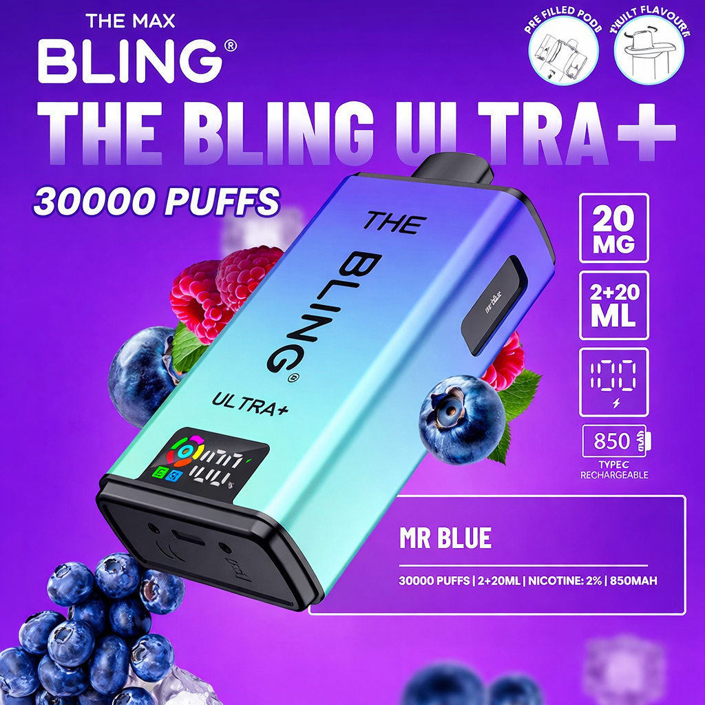 While flavour options vary by region and retailer, the Bling Ultra Plus 30K range generally focuses on bold, crowd-pleasing profiles, thick fruits, menthols, and classic blends designed for all-day use.