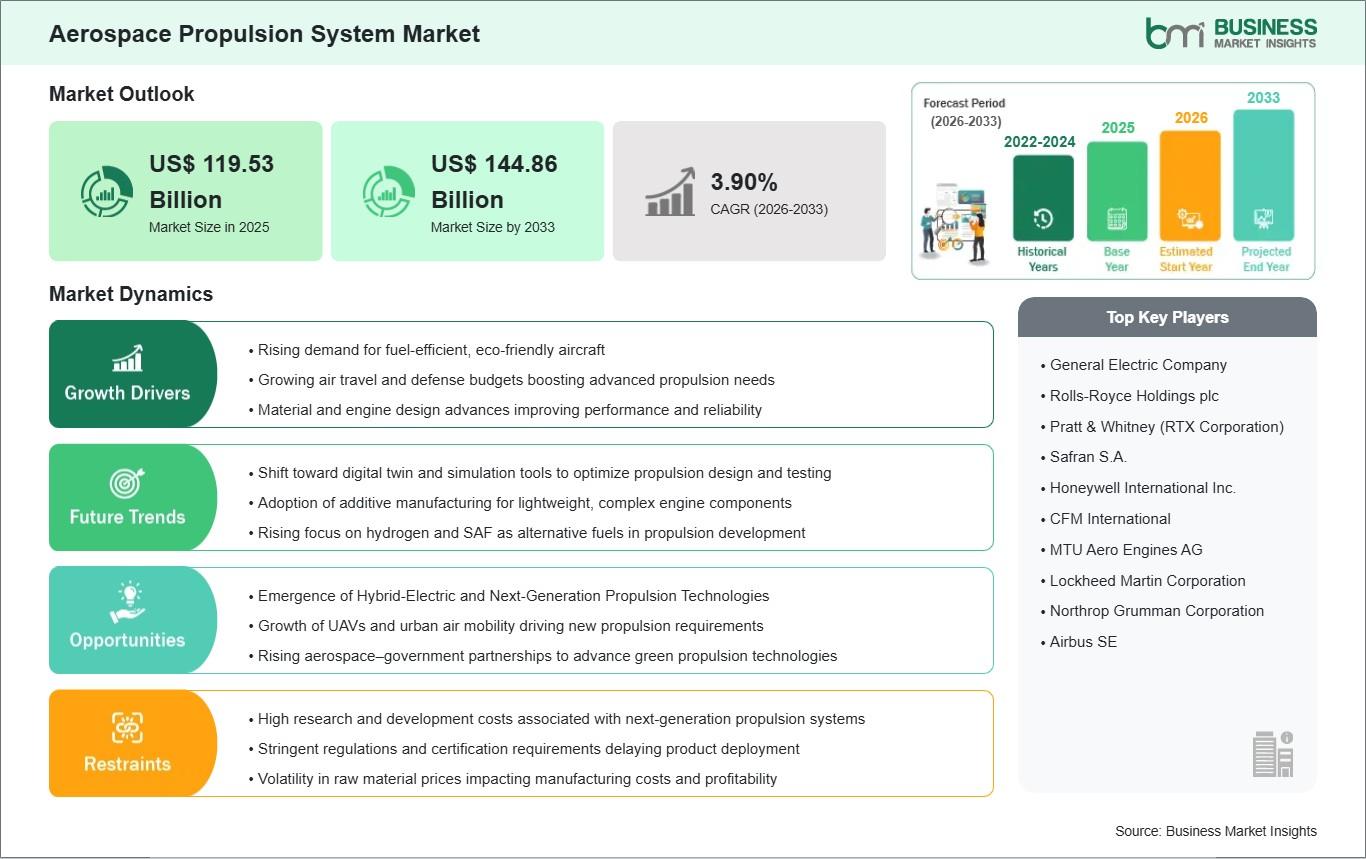 According to the Business Market Insights The Global Aerospace Propulsion System Market is experiencing steady growth, with key guidelines highlighting like sustainability focus, segments by engine type and application, recent innovations in electric and hybrid tech, opportunities in emerging regions, a positive long-term outlook trends, dominant players, and regional variations.