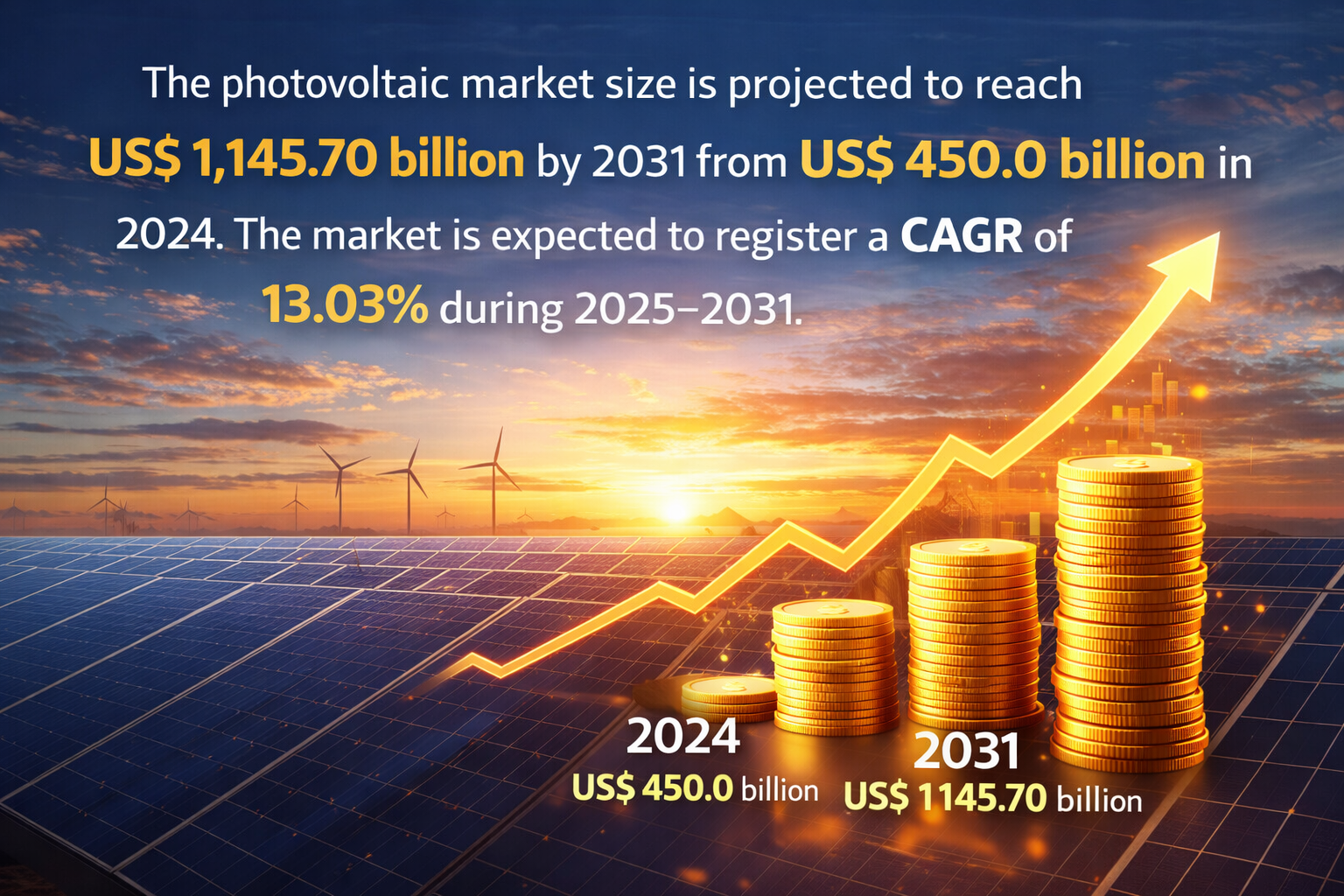 The global photovoltaic market is experiencing strong expansion as the transition toward clean and sustainable energy accelerates worldwide. The market size is projected to grow from US$ 450.0 billion in 2024 to US$ 1,145.70 billion by 2031, registering a CAGR of 13.03% during 2025 to 2031. Photovoltaic technology has evolved into a mature and mainstream power generation solution that supports national energy security, reduces carbon emissions, and lowers long-term electricity costs. Increasing environmental concerns, supportive government policies, and continuous technological improvements are driving large-scale adoption across residential, commercial, and utility sectors.