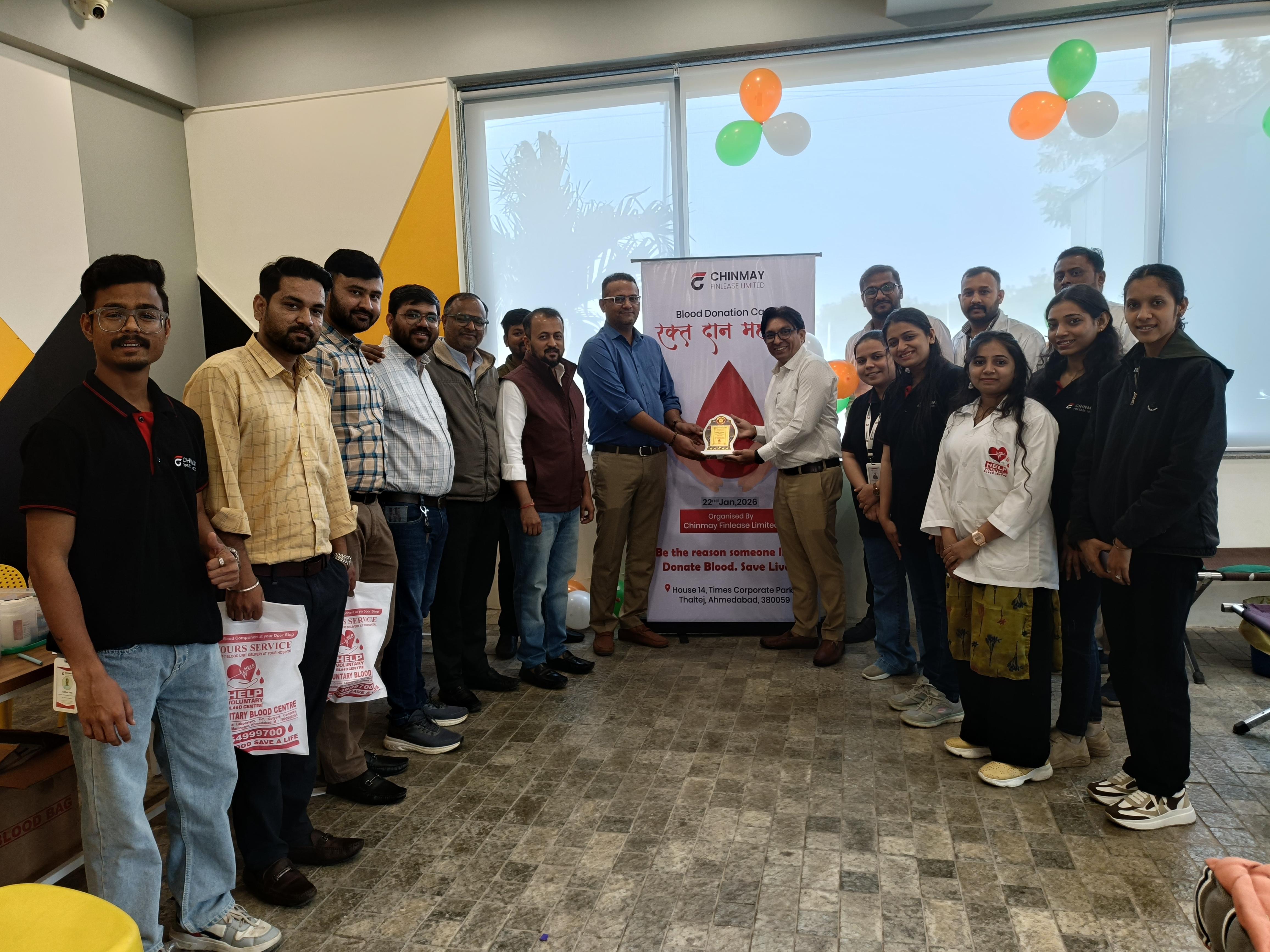 The camp, held at the premises of Chinmay Finlease Limited, was conducted under the careful supervision of medical professionals with all safety measures in place. The event successfully collected several units of blood, each capable of saving at least three lives. Post donation, participants received care and appreciation certificates in recognition of their contributions.
