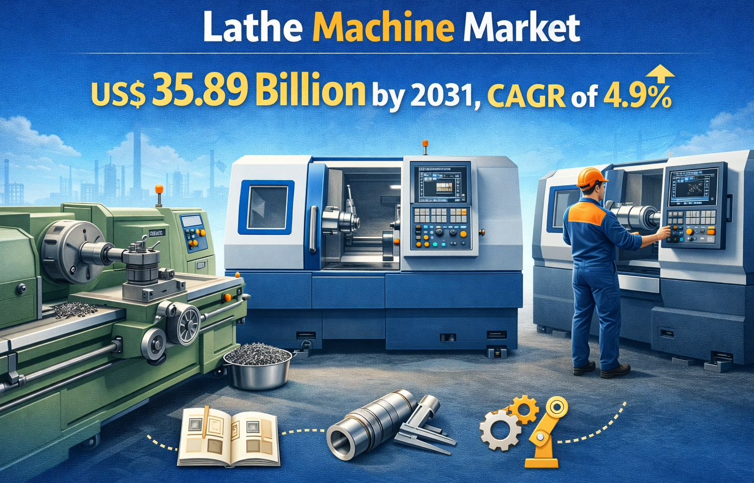 The Lathe Machine Market Size is expected to reach US$ 35.89 Billion by 2031. The market is anticipated to register a CAGR of 4.9% during 2025-2031. The market is witnessing steady growth, driven by rising demand for precision machining across automotive, aerospace, general machinery, and metalworking industries. Lathe machines play a critical role in shaping, cutting, drilling, and finishing metal and composite components, making them indispensable in modern manufacturing environments.