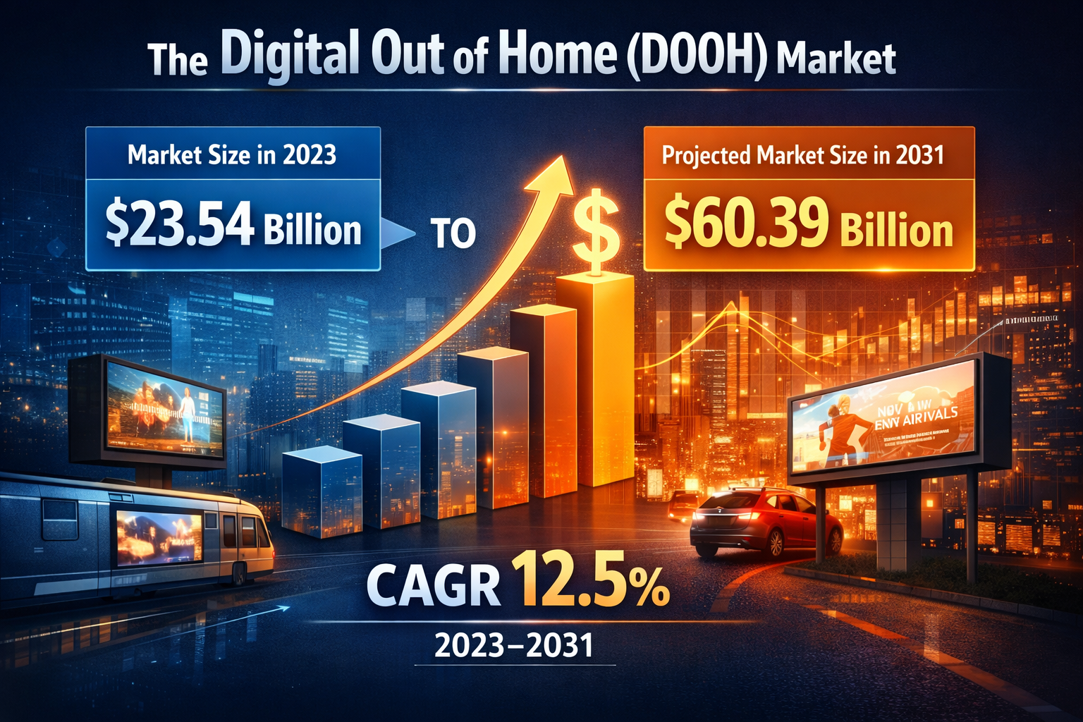 The Digital Out of Home (DOOH) market is emerging as one of the fastest growing segments within the global advertising ecosystem. Valued at US$ 23.54 billion in 2023, the market is projected to reach US$ 60.39 billion by 2031, expanding at a CAGR of 12.5% during the forecast period. DOOH refers to digital media displayed in public spaces such as billboards, transit hubs, retail locations, and other high footfall environments. Unlike traditional online advertising that targets users on personal devices, DOOH connects with audiences during their daily routines, enabling brands to deliver contextual and high impact messaging at scale.