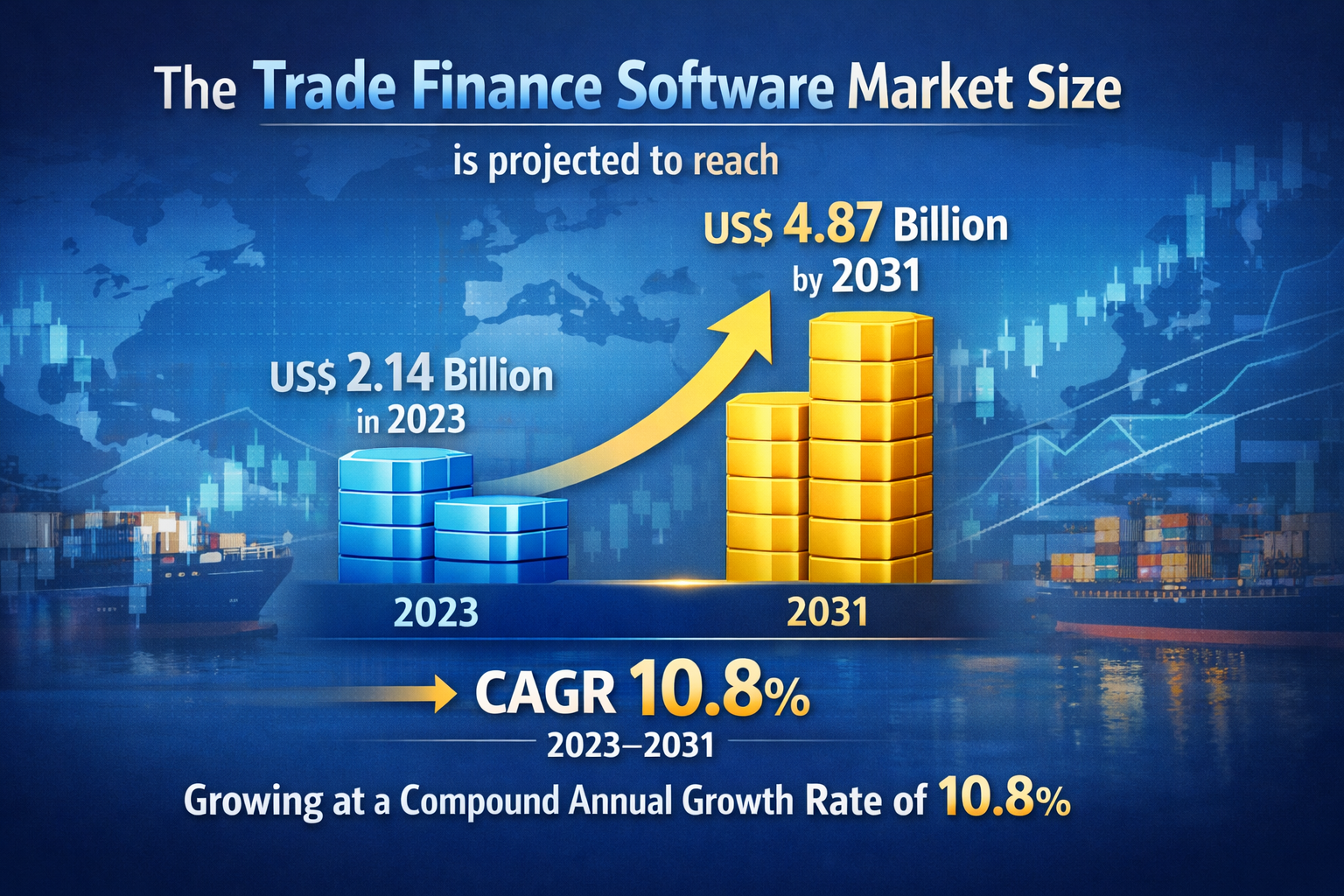 The global trade finance software market is witnessing strong growth as organizations modernize cross-border transaction processes and move away from traditional paper-based systems. Valued at US$ 2.14 billion in 2023, the market is projected to reach US$ 4.87 billion by 2031, expanding at a CAGR of 10.8% during the forecast period. This growth reflects the increasing need for efficiency, transparency, and regulatory compliance in international trade operations.
