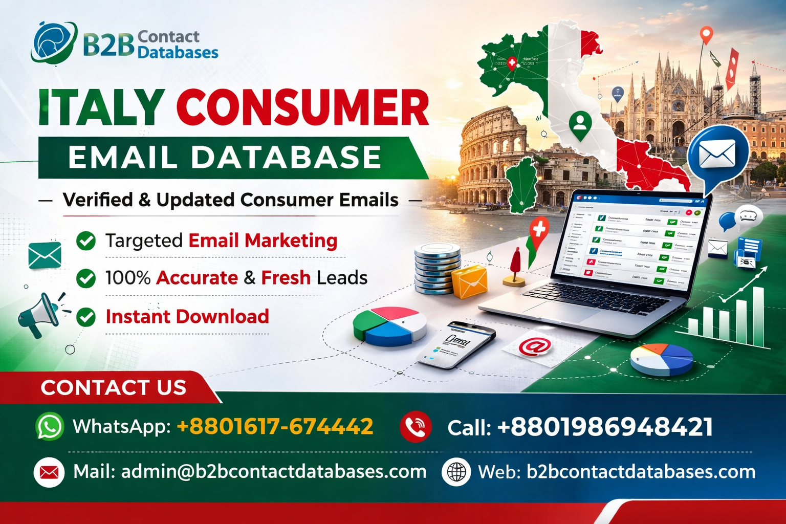 Italy is one of Europe’s largest and most active consumer markets. Businesses looking to expand internationally often consider Italy because of its strong purchasing power and growing digital engagement. An Italy Consumer Email Database gives companies direct access to this valuable market segment.