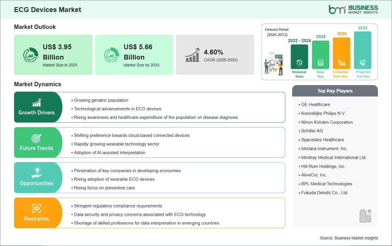 The ECG Devices Market is moderately competitive, with key players focusing on product innovation, mergers & acquisitions, and strategic partnerships to strengthen their global presence. Major companies operating in the market include: