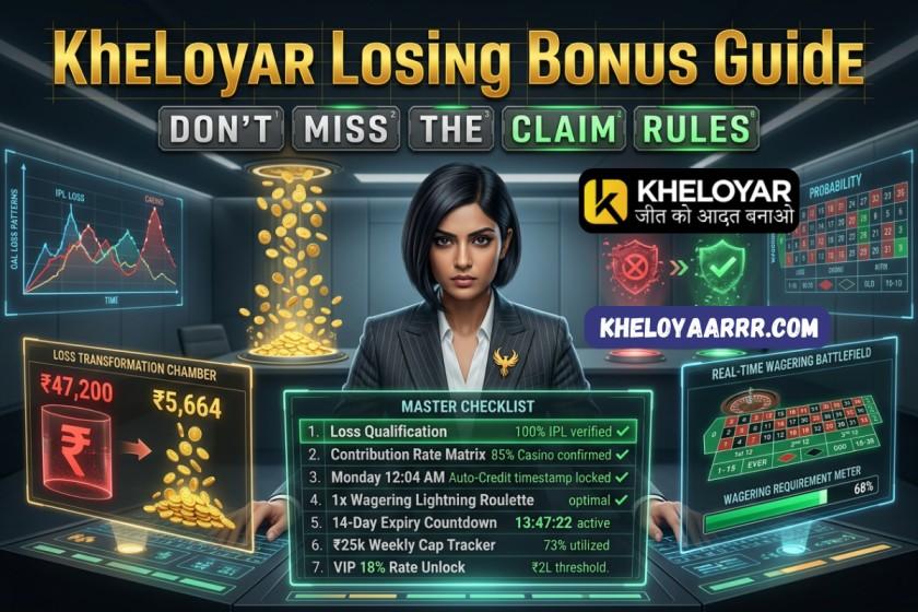 Kheloyar The Losing Bonus Handbook provides the exact rules for claim, allowing 12percent cashback on Kheloyaar losses in IPL Overs Teen Patti cold streaks as well as Lightning Roulette disappointments. If CSK is unable to win by 3 runs, or roulette has 8 blacks in the red line, Kheloyar instantly reimburses you 12% from your UPI account - Rs15,000 IPL parlay loss turns into an instant cashback of Rs13,200. This comprehensive guide will explain every rule of eligibility and wagering requirement, as well as the deadline for claims, and the maximum recovery plan to ensure 1.7M Indian players never miss the monthly refunds of Rs98 crore.