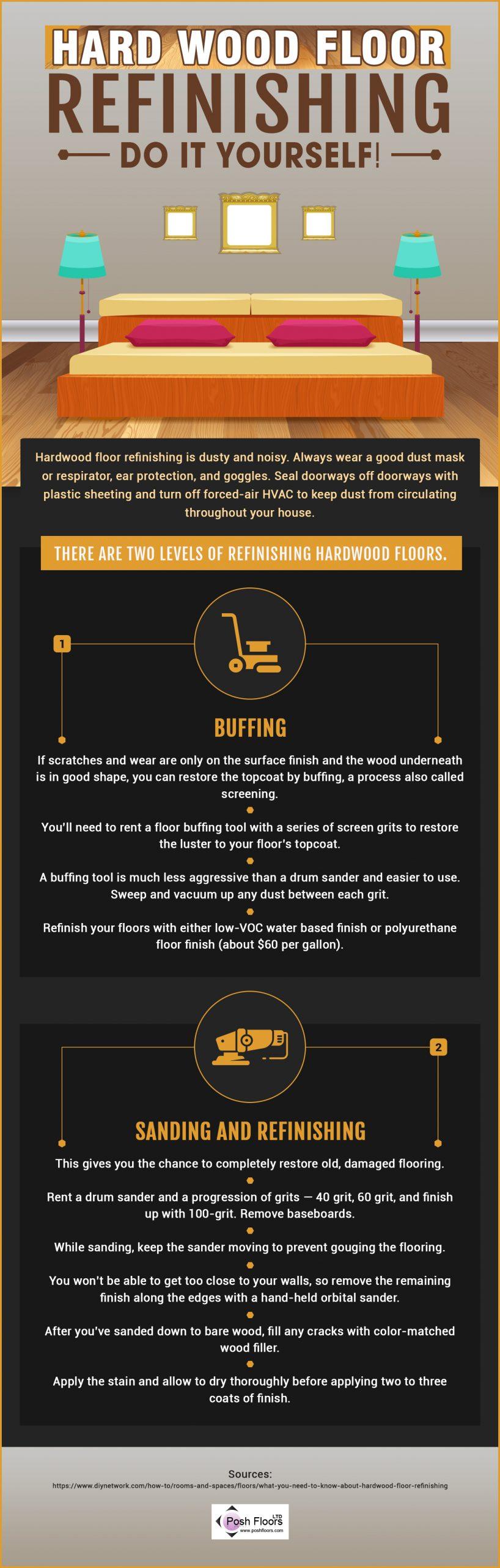 The infographic “Hard Wood Floor Refinishing — Do It Yourself!” provides a clear and accessible overview of how homeowners can refresh worn hardwood floors without professional intervention. Hardwood flooring adds warmth and character to a space, but daily foot traffic, scratches, and fading can diminish its appearance over time.