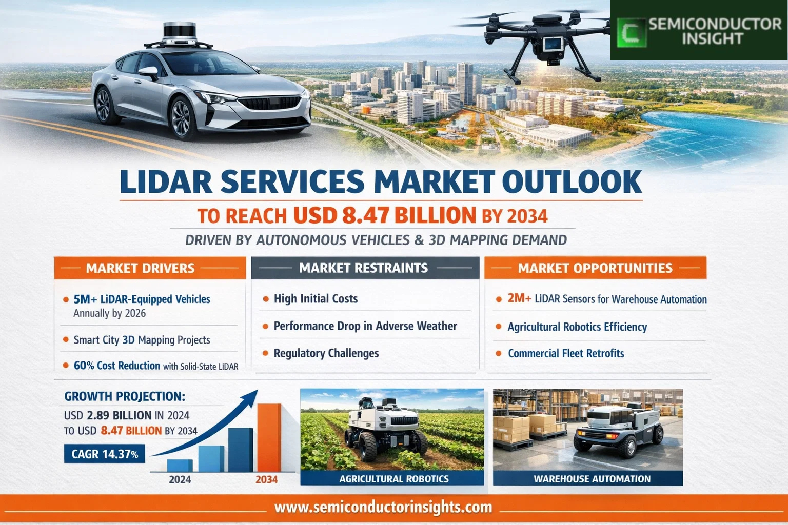 - Warehouse automation projected to require over 2 million LiDAR sensors annually by 2027