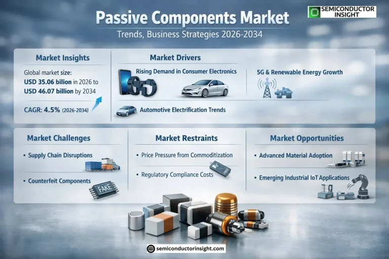 Global Passive Components Market size was valued at USD 33.51 billion in 2025 and is projected to grow from USD 35.06 billion in 2026 to USD 46.07 billion by 2034, exhibiting a CAGR of 4.5% during the forecast period 2026–2034. The market demonstrates steady expansion, supported by automotive electrification, 5G deployment, and industrial IoT integration.