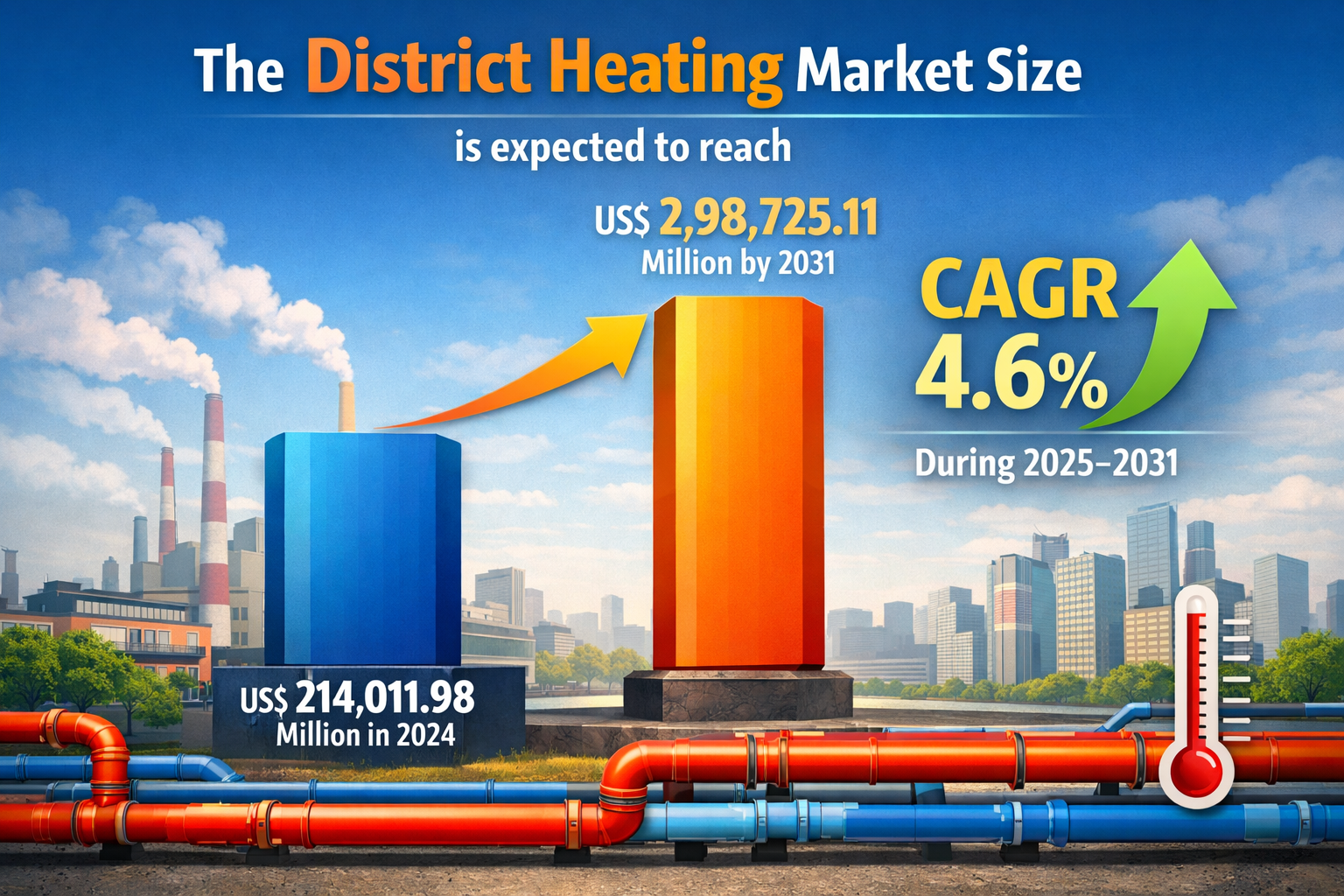The district heating market is expected to reach US$ 298,725.11 million by 2031, growing from US$ 214,011.98 million in 2024 at a CAGR of 4.6% from 2025 to 2031.
