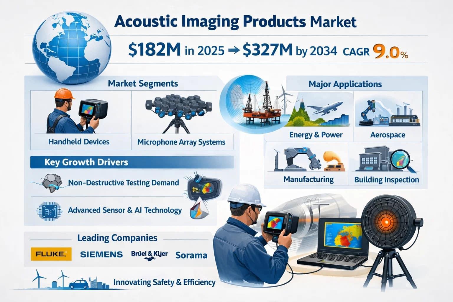 The expanding global NDT market, projected to grow at 8.2% CAGR, creates parallel growth opportunities for acoustic imaging technologies.