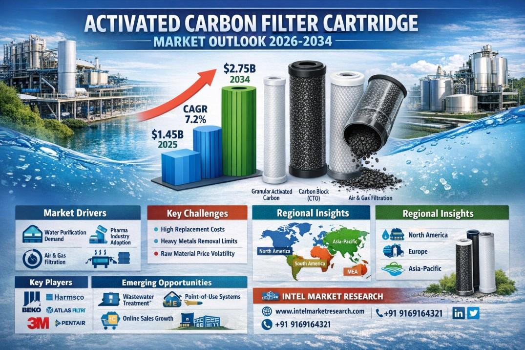According to a new report from Intel Market Research, the global Activated Carbon Filter Cartridge market was valued at USD 1.45 billion in 2025 and is projected to reach USD 2.75 billion by 2034, growing at a CAGR of 7.2% during the forecast period (2026–2034). This growth is driven by increasing environmental regulations, rising demand for clean water solutions, and growing awareness about indoor air quality.