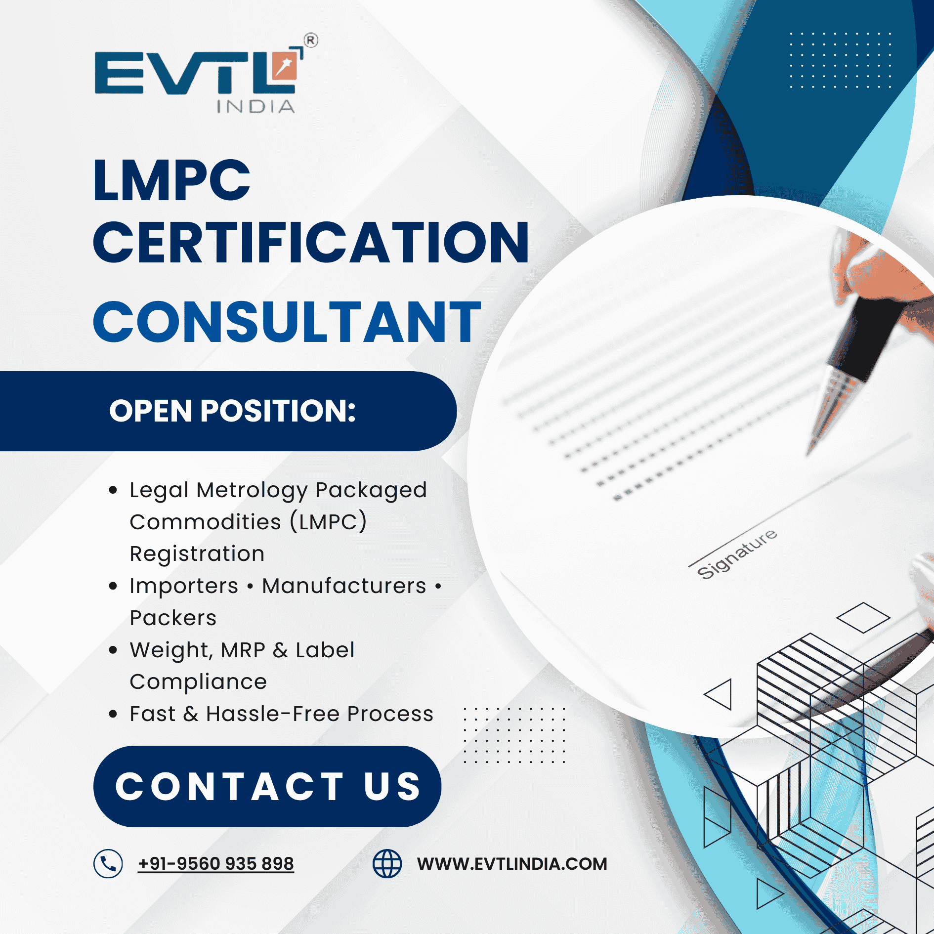 EVTL India is one of the leading BIS Consultant in India , helping manufacturers obtain their BIS licences hassle-free.LMPC Certification is an essential requirement for businesses dealing with packaged commodities in India. By completing LMPC New Registration and following the proper procedures to Apply for LMPC Certification, companies can ensure compliance with the Legal Metrology Act.