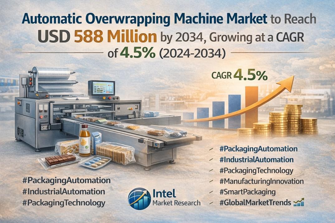 According to a new report from Intel Market Research, the global Automatic Overwrapping Machine market was valued at USD 435 million in 2024 and is projected to reach USD 588 million by 2034, growing at a steady CAGR of 4.5% during the forecast period (2024–2034). This growth is driven by increasing automation in packaging processes, rising demand for efficient product wrapping solutions, and advancements in packaging technology across multiple industries.