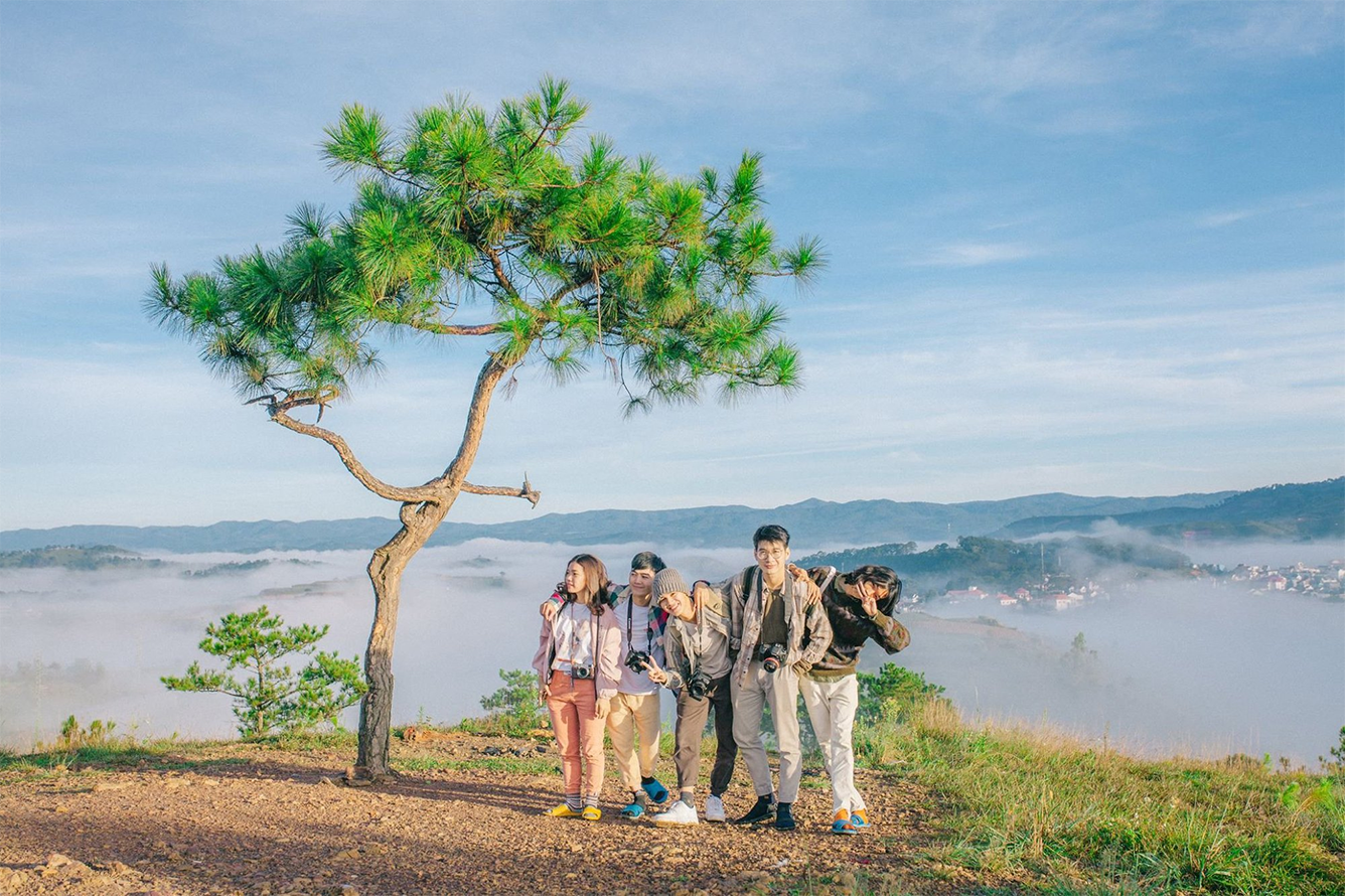 Điểm nhấn tại Thiên Phúc Đức chính là "cây thông cô đơn" nghiêng mình trên đỉnh đồi. Đây là góc check-in không thể bỏ lỡ để có những bức ảnh đậm chất nghệ thuật. Vì đường lên đồi hơi dốc, nếu bạn đi theo đoàn gia đình hoặc nhóm bạn thân, hãy ưu tiên các dòng xe có động cơ khỏe để di chuyển an toàn.