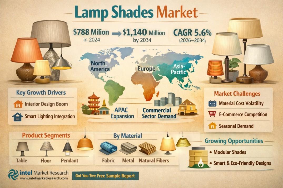 According to new market intelligence from Intel Market Research, the global lamp shades market was valued at USD 788 million in 2024 and is projected to reach USD 1,140 million by 2034, growing at a steady CAGR of 5.6% during the forecast period (2026–2034). This sustained growth reflects increasing consumer focus on aesthetic lighting solutions and the ongoing renaissance in interior design across residential and commercial sectors.