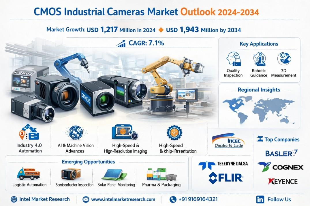 According to a new report from Intel Market Research, the global CMOS Industrial Cameras market was valued at USD 1,217 million in 2024 and is projected to reach USD 1,943 million by 2034, growing at a steady CAGR of 7.1% during the forecast period (2024-2034). This growth is propelled by increasing industrial automation, advancements in machine vision technologies, and the rapid adoption of Industry 4.0 solutions across manufacturing sectors.