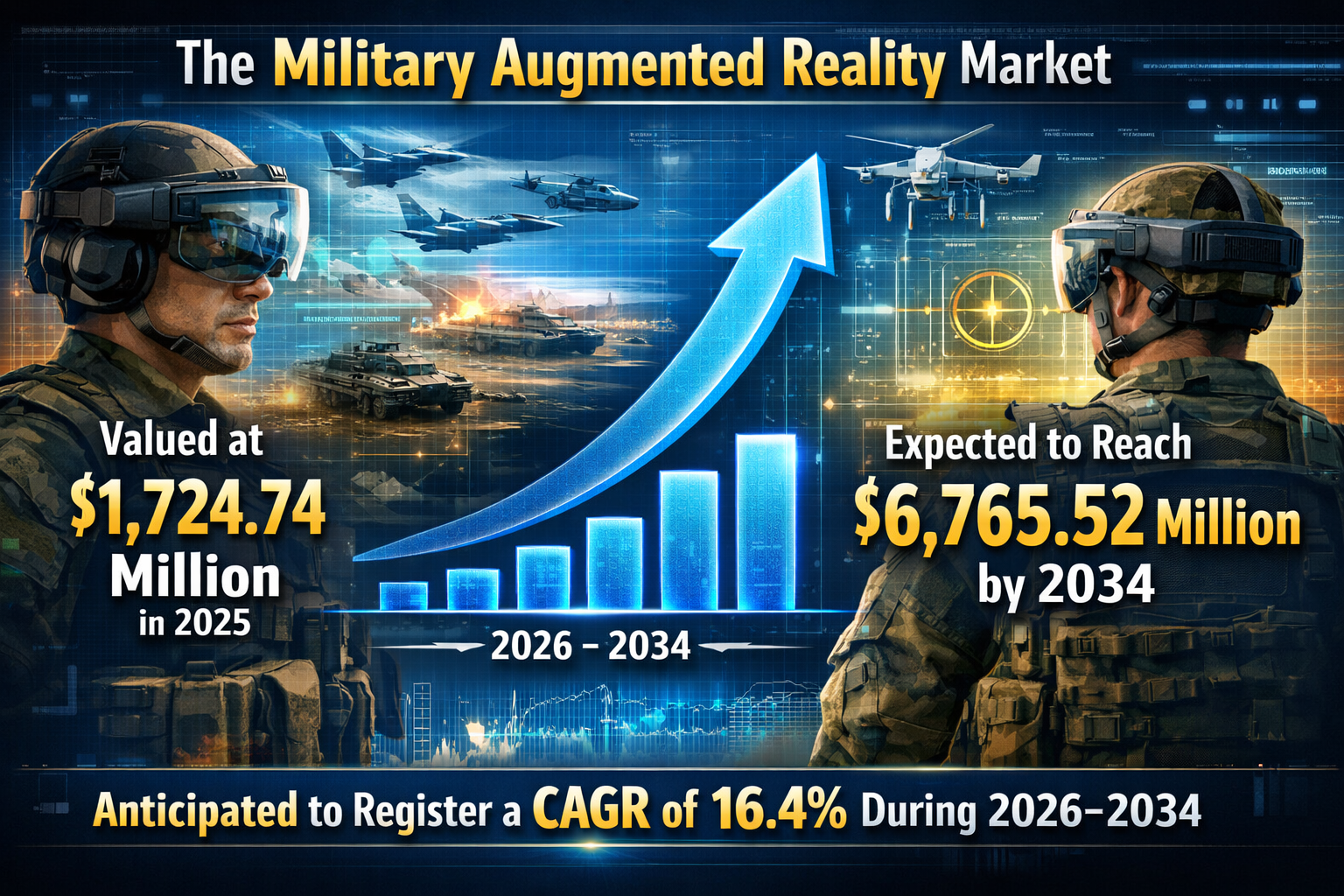The global defense landscape is experiencing a significant shift as modern warfare moves toward a digital, data-driven frontier. High-resolution sensors, artificial intelligence, and real-time data overlays are no longer experimental concepts but essential requirements for mission success. According to latest market evaluations, The Military Augmented Reality Market size was valued at US$ 1724.74 million in 2025 and is expected to reach US$ 6765.52 million by 2034. The market is anticipated to register a CAGR of 16.4% during 2026-2034. This growth is underpinned by the urgent need for enhanced situational awareness and the rising adoption of soldier modernization programs worldwide.