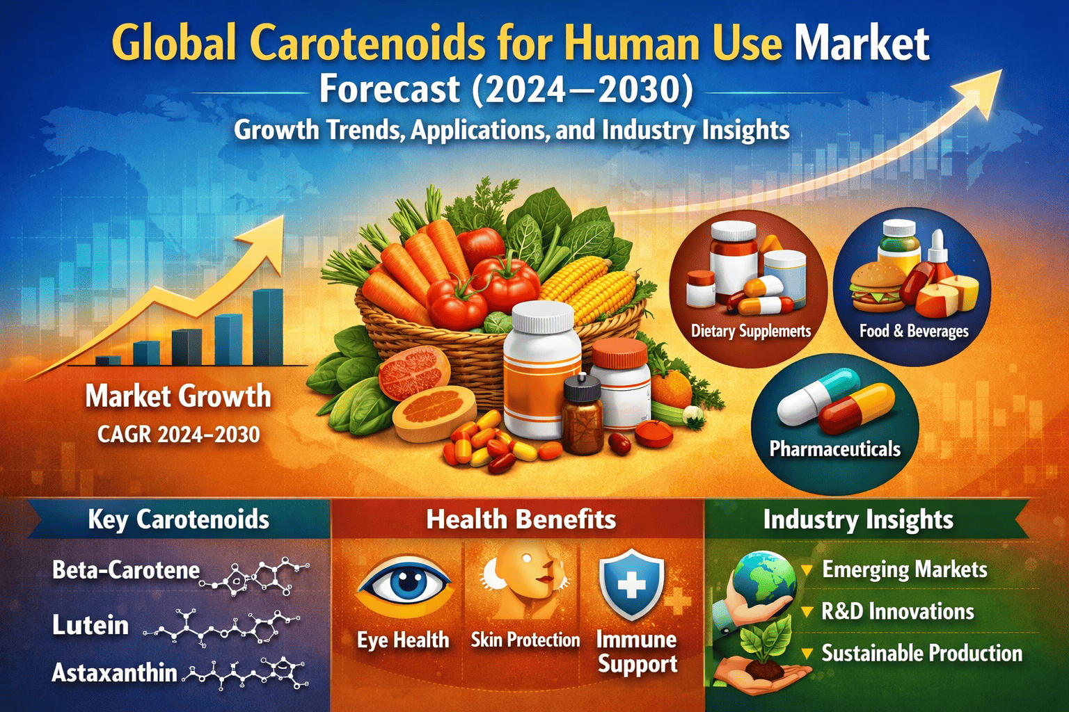 Carotenoids are nature-derived pigments responsible for vibrant colors in fruits and vegetables, valued for their antioxidant properties and role in eye health, immune support, and chronic disease prevention. As demand for natural and functional ingredients rises, industries are increasingly incorporating carotenoids into dietary supplements, fortified foods, and skincare products.