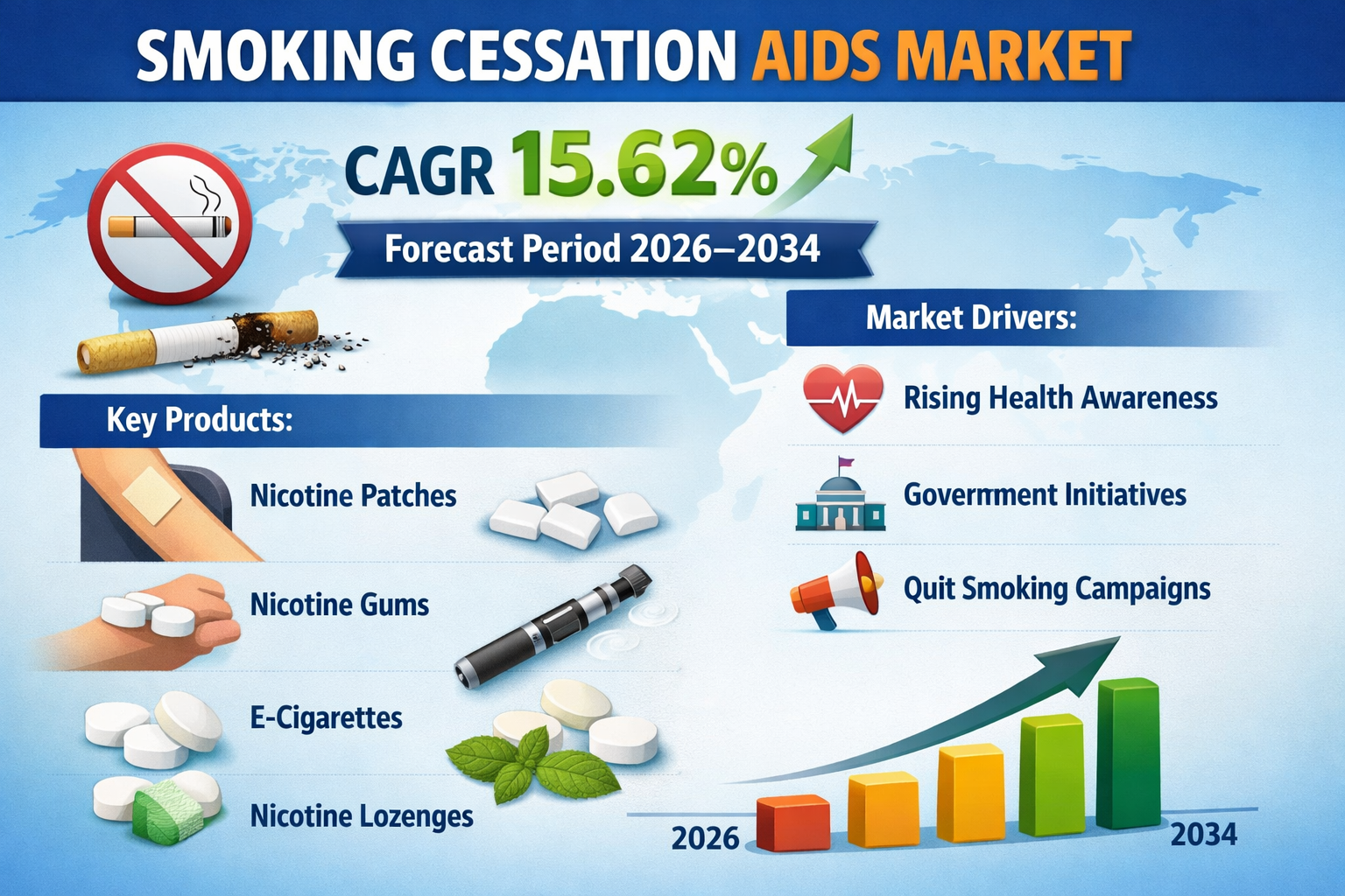 The global Smoking Cessation Aids Market is projected to grow from US$ 41.60 billion in 2025 to US$ 153.42 billion by 2034, registering an impressive CAGR of 15.62% during the forecast period from 2026 to 2034. This strong growth trajectory reflects increasing awareness of smoking-related health risks, technological advancements in cessation products, and supportive government initiatives aimed at reducing tobacco use worldwide.