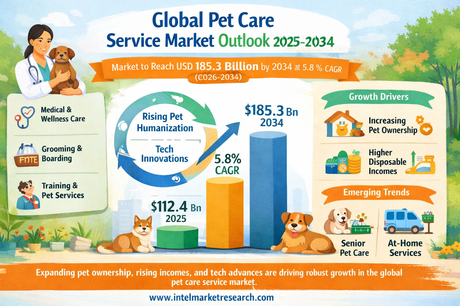 According to a new report from Intel Market Research, the global Pet Care Service market was valued at USD 112.4 billion in 2025 and is projected to reach USD 185.3 billion by 2034, growing at a CAGR of 5.8% during the forecast period (2026-2034). This growth is fueled by increasing pet humanization trends, rising disposable incomes in emerging economies, and technological advancements in pet healthcare services.