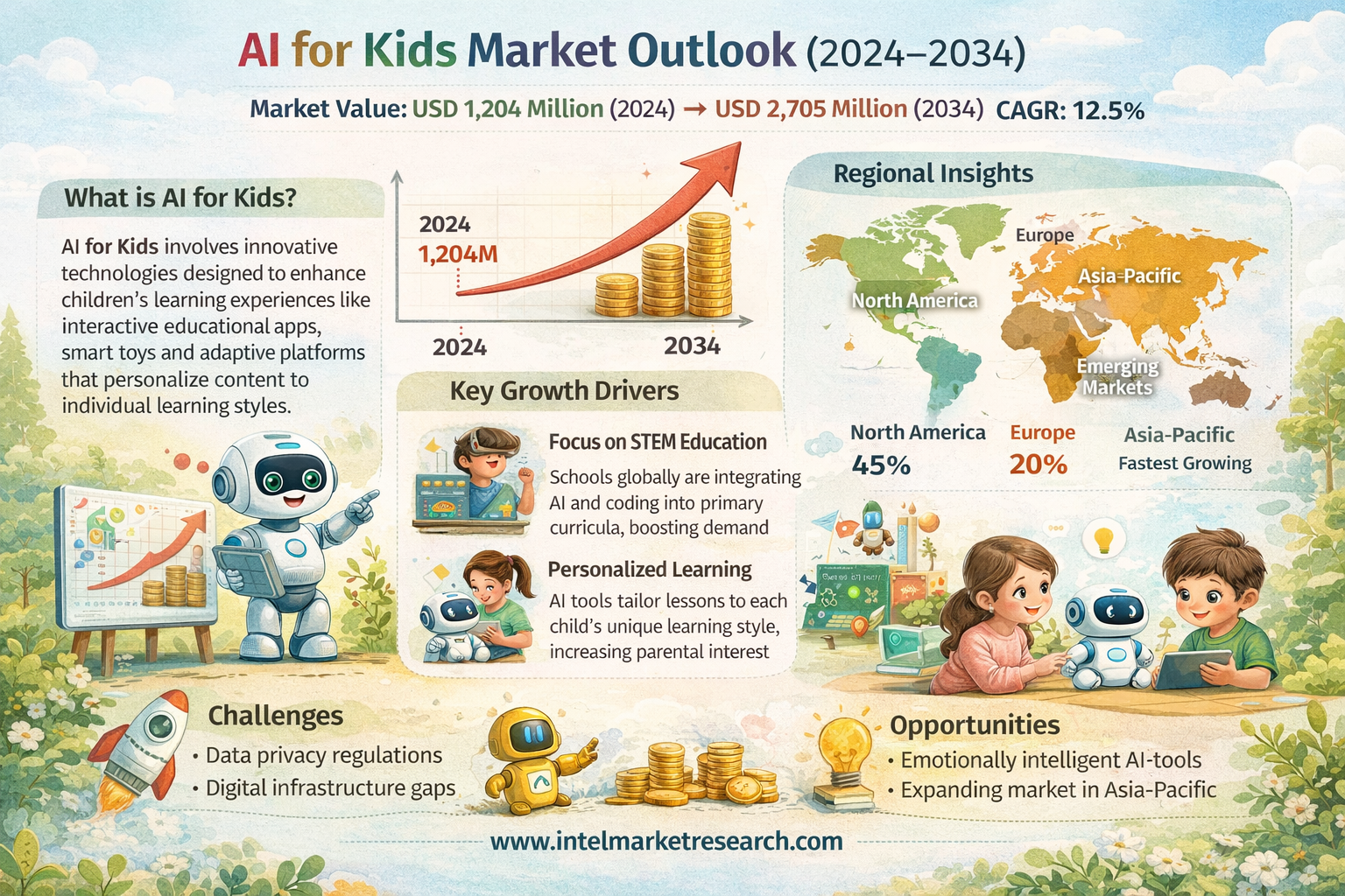 According to a new report from Intel Market Research, the global AI for Kids market was valued at USD 1,204 million in 2024 and is projected to reach USD 2,705 million by 2034, growing at an impressive CAGR of 12.5% during the forecast period (2025–2034). This remarkable growth trajectory reflects the accelerating adoption of artificial intelligence solutions tailored for children's education and development worldwide.