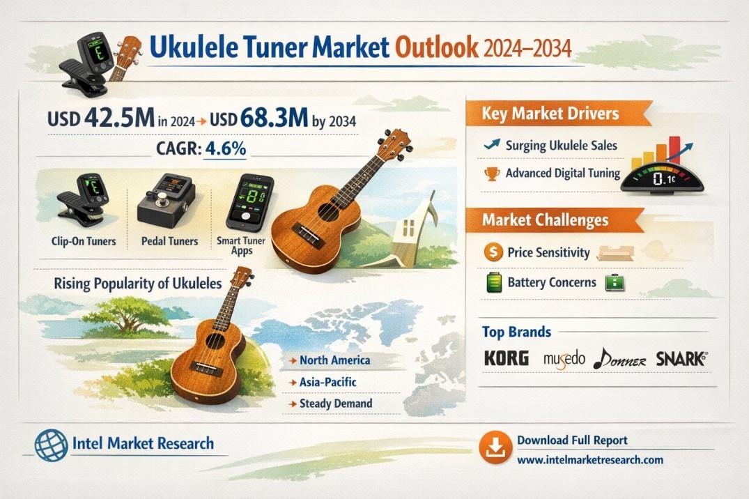 According to a new report from Intel Market Research, the global Ukulele Tuner market was valued at USD 42.5 million in 2024 and is projected to reach USD 68.3 million by 2034, growing at a steady CAGR of 4.6% during the forecast period (2025–2034). This growth stems from the rising popularity of ukuleles worldwide and continuous advancements in digital tuning technology.