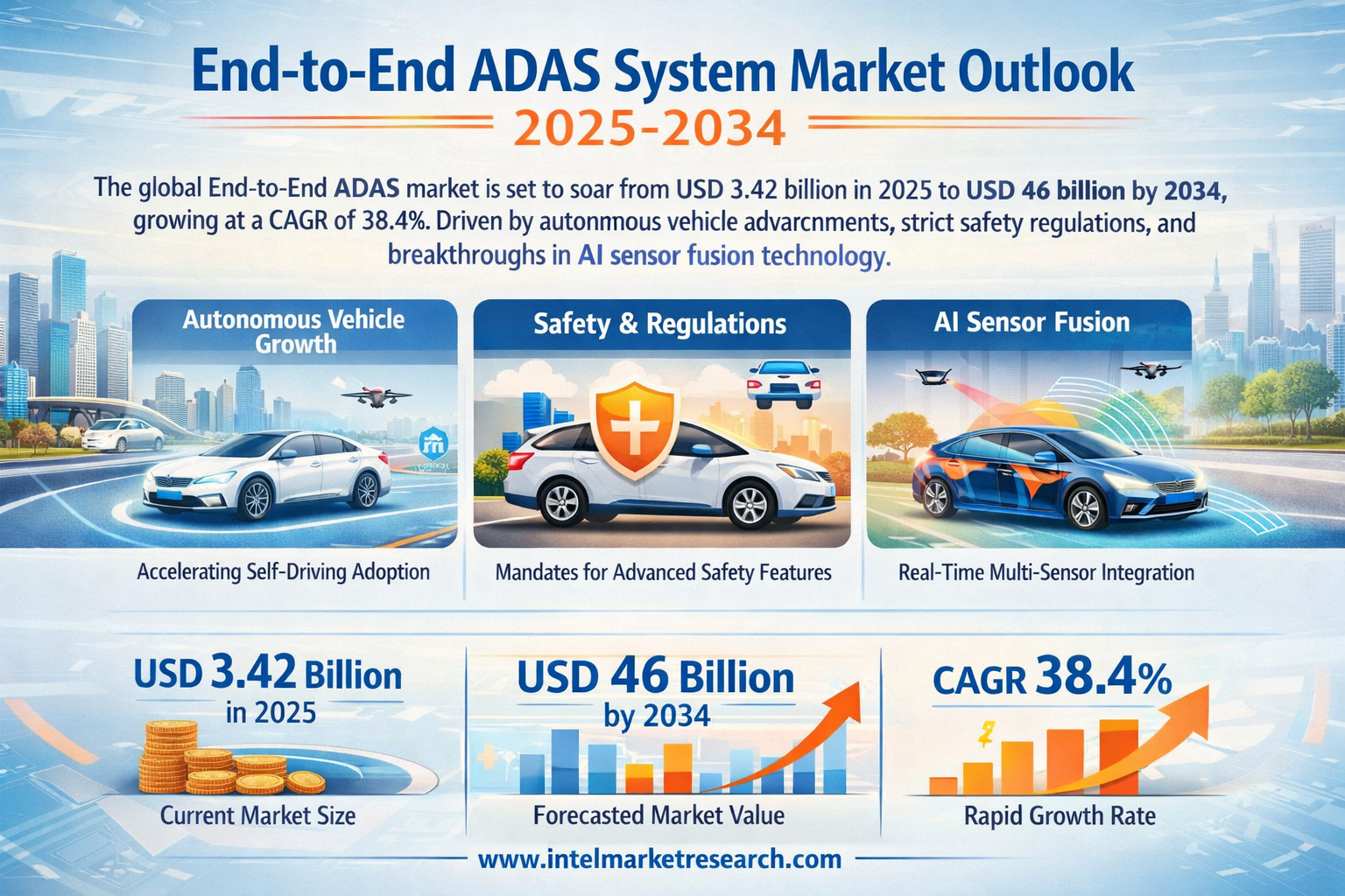 According to a new report from Intel Market Research, the global End-to-end ADAS System market was valued at USD 3,423 million in 2025 and is projected to reach USD 46,000 million by 2034, growing at a CAGR of 38.4% during the forecast period (2025-2034). This exponential growth is fueled by accelerating autonomous vehicle development, regulatory mandates for vehicle safety, and breakthroughs in AI-powered sensor fusion technologies.