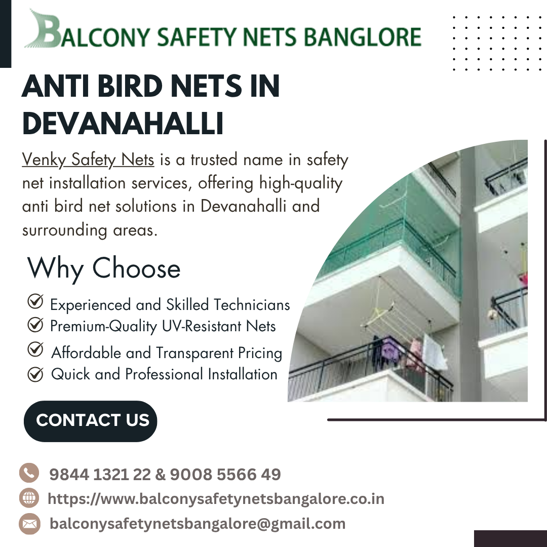 As residential and commercial development continues to grow in Devanahalli, property owners are enjoying modern infrastructure and peaceful surroundings. However, with open balconies, terraces, warehouses, and large building structures, bird-related problems—especially from pigeons—are becoming increasingly common. To address this issue effectively and humanely, Venky Safety Nets offers professional Anti Bird Nets in Devanahalli, helping families and businesses maintain clean, safe, and hygienic spaces.