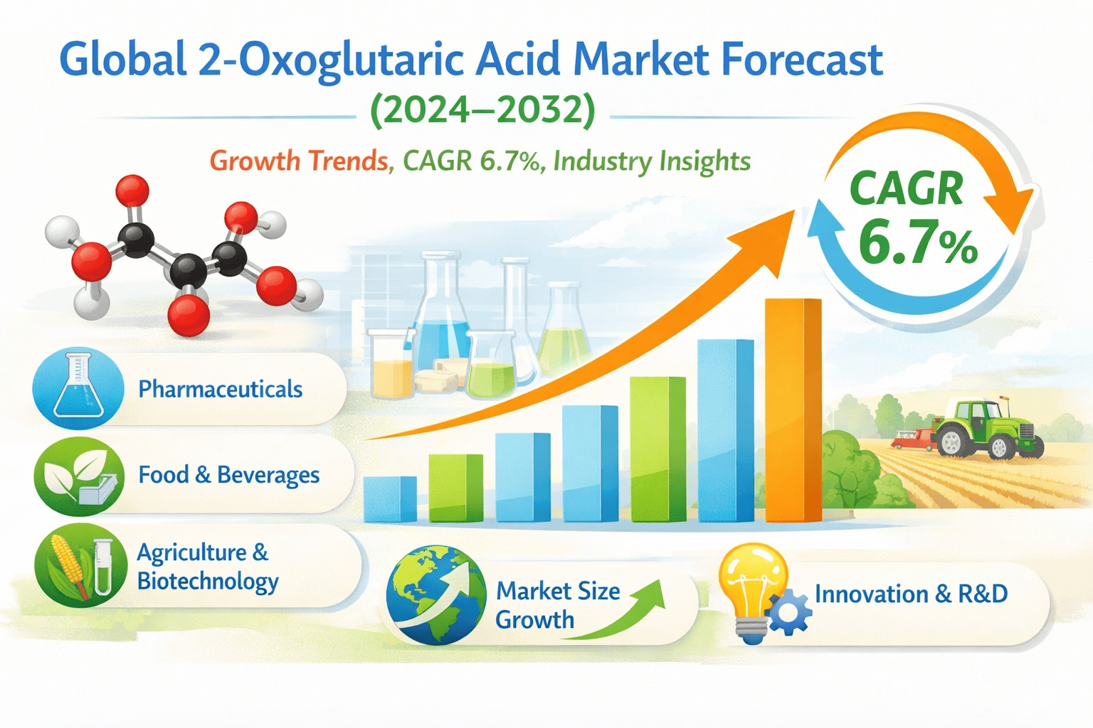 - Growth in Industrial Applications as an Organic Intermediate: As an organic intermediate, 2-Oxoglutaric Acid is utilized in the synthesis of various chemicals, including fertilizers, agrochemicals, and specialty polymers. Its ability to act as a chelating agent and participate in numerous chemical reactions makes it valuable in industrial processes. The agrochemical sector, in particular, benefits from its use in developing compounds that enhance crop yield and soil health. With the global agrochemical market projected to grow steadily, the demand for efficient and sustainable intermediates is increasing, positioning 2-Oxoglutaric Acid as a key player in this expansion.