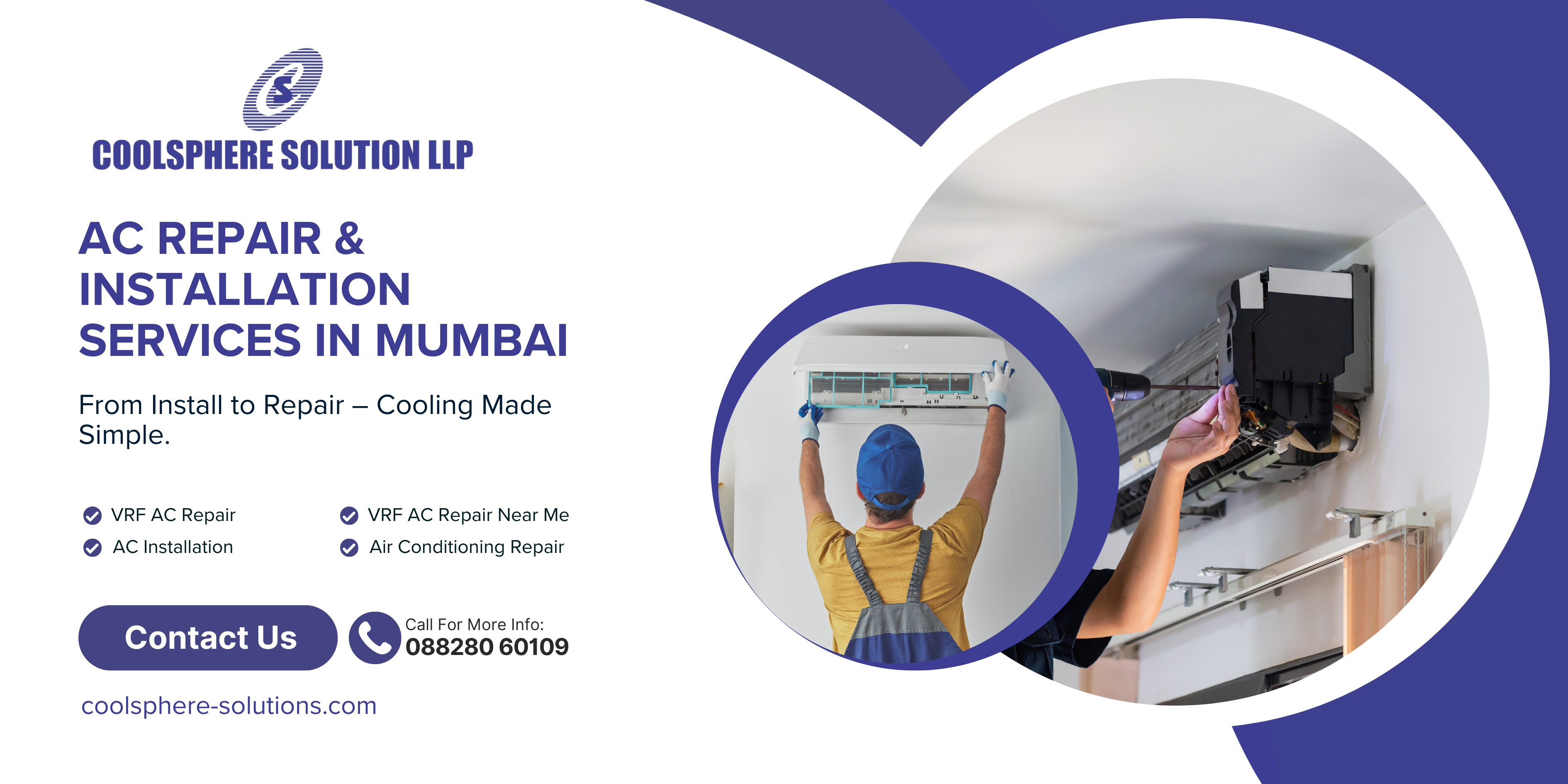 Need urgent AC repair in Mumbai? Coolsphere Solutions LLP offers quick, reliable, and professional AC repair service for homes and businesses. From compressor repair to gas refilling, cooling issues, and routine servicing—our team ensures long-lasting solutions. We prioritize quality, transparency, and fast response. Keep your AC running smoothly—contact us today!