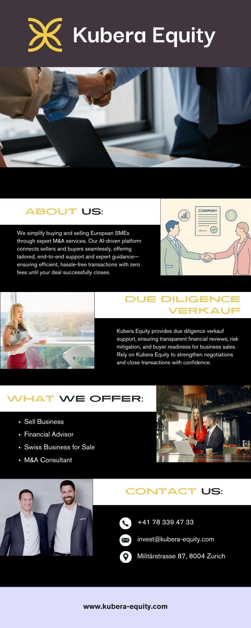 Kubera Equity provides due diligence verkauf support, ensuring transparent financial reviews, risk mitigation, and buyer readiness for business sales. Rely on Kubera Equity to strengthen negotiations and close transactions with confidence.