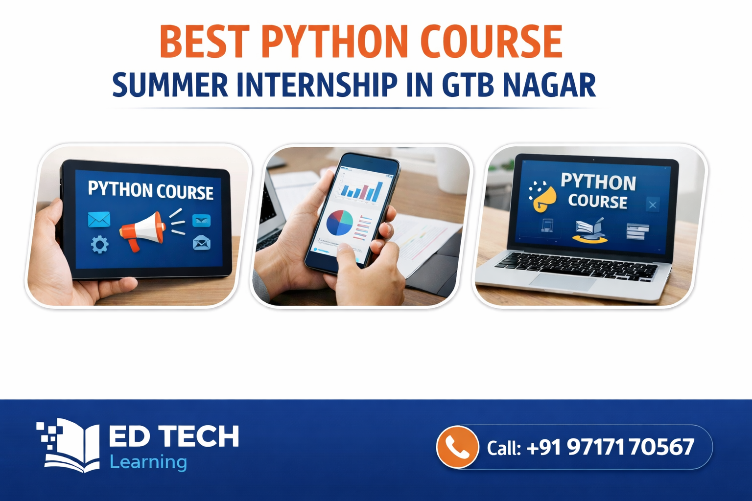 Python is widely used in web development, data science, automation, and AI. With practical training, you can gain the confidence to build applications, scripts, and data tools that matter. If you are looking for a productive way to spend your summer then join Edtech Learning’s Python Course Summer Internship in GTB Nagar and learn one of the world’s most popular programming languages.