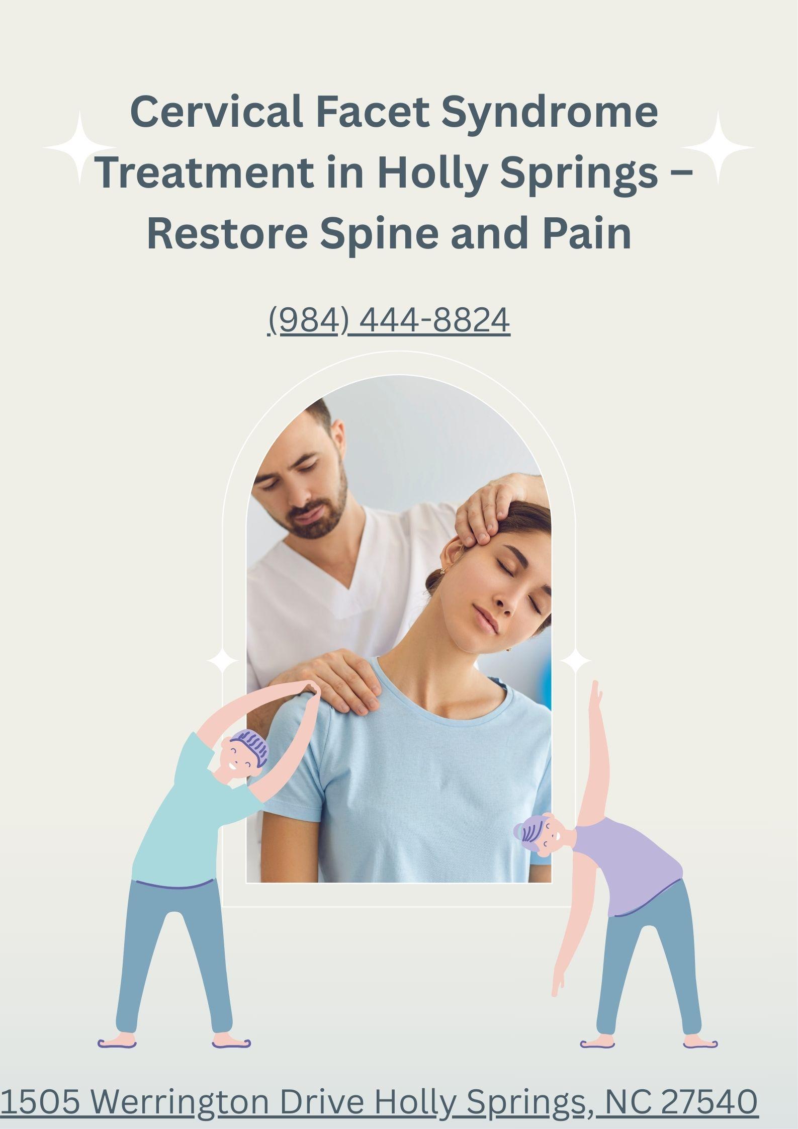 - Cervical Facet Syndrome Treatment in Holly Springs – Restore Spine and Pain provides personalized, non-surgical care to relieve neck pain, improve mobility, and restore daily comfort through advanced pain management solutions.